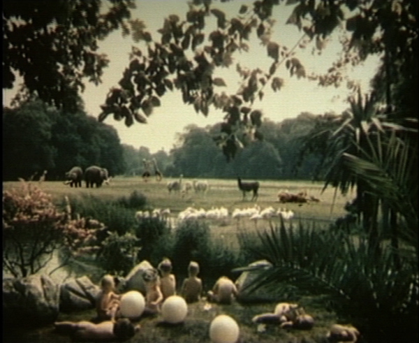 A stylish villa in beautiful surroundings, a handsome man, an attractive woman, both young and trim, talking about their lives and their wishes for the future: To all appearances a happy, well-off couple presents itself – if it weren’t for those brief moments, where a strange inconsistency between the self-assuredmanners and their wordsmakes itself felt. Corinna Schnitt has her perfect couple voice ideas of a beautiful life taken frominterviews with Californian teenagers. The presented idyll reveals itself as thoroughly staged, as is the closing panorama of paradisiacal innocence, a shot froma DEFAmovie showing naked children and cubs playing together. The beautiful life that is presented in front of Schnitt’s camera and its two protagonists embody teenagers’ dreams of the future; this ideal world is a fiction, which arises fromyoung people’s ideas about a successful career, ideal family life, and a perfect society, themselves in turn influenced by fictions and stereotypical representations: Fiction reflects back upon fiction, perfect happiness, as presented here, has something alarming about it.